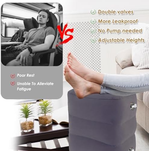 [3 Layer Height Adjustable] This inflatable airplane foot rest features 3 layer height adjustable that is easy to use. You can adjust the heights according to your comfortable position for your legs that is leg caring.