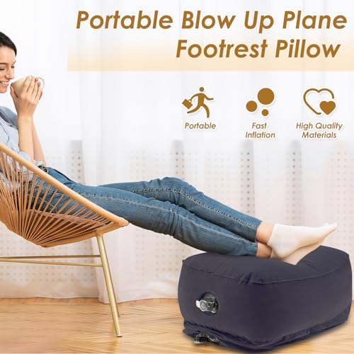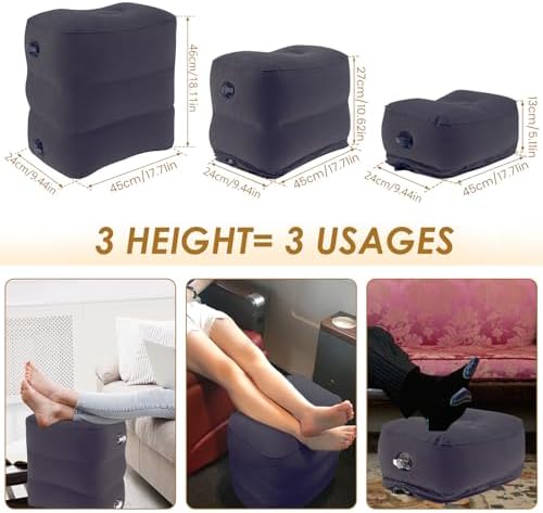 Relaxing: This inflatable airplane foot rest offers foot or leg support while long-time reading, gaming, watching TV at home, office, travelling and more. 3 layer height adjustable that is comfortable to use.