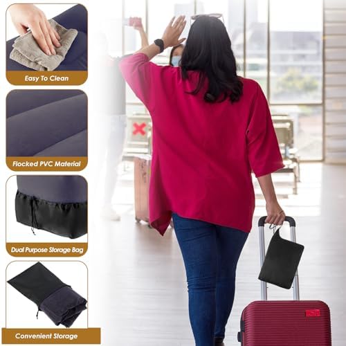 [User-Friendly Design] This inflatable footrest pillow is equipped with 2-in-1 dual valves. After inflating, just push up the transparent cover and push whole valve in, making it flush with the side of the inflatable footrest pillow. Reduce the hassle of carrying a pump and making noise in flight.
