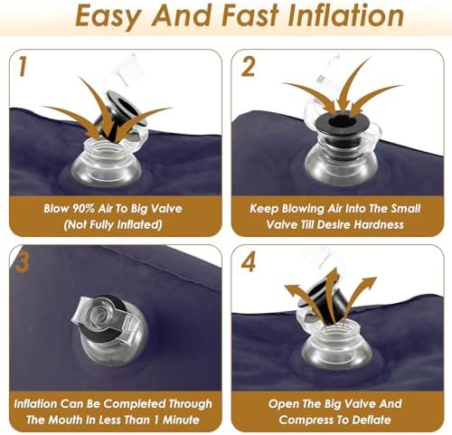 [Warm Tips] This product is inflatable, please avoid contact with sharp objects during use to prevent leakage. When it is inflated, please press the air valve to make the air valve flush with the product, which can better fix the valve and avoid potential leakage caused by the valve not functioning properly.